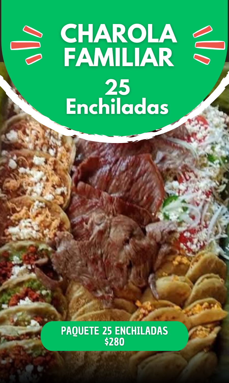 Paquete de 25 enchiladas $280